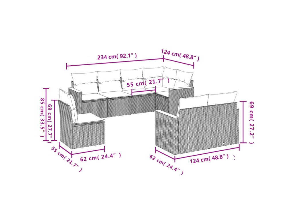 Tato zahradní sedací souprava je dokonalým doplňkem vaší zahrady, terasy nebo dvorku a poskytne vám pohodlné a příjemné místo, kde si můžete povídat s rodinou a přáteli nebo jen tak odpočívat a užívat si pobyt venku.
