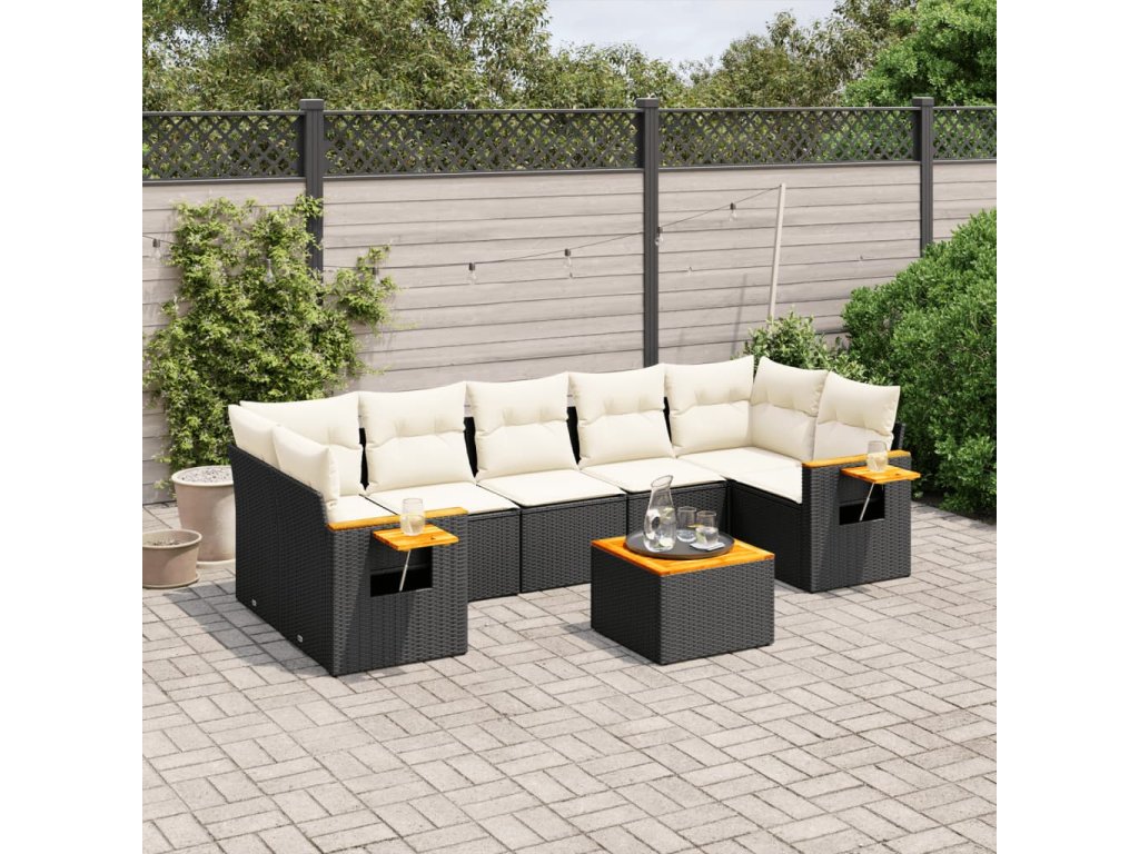 8dílná zahradní sedací souprava s poduškami černá polyratan 3226651