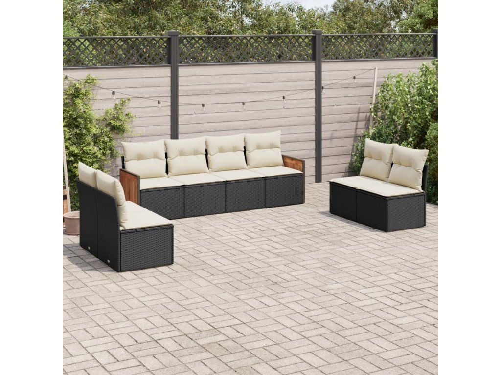 8dílná zahradní sedací souprava s poduškami černá polyratan 3227568