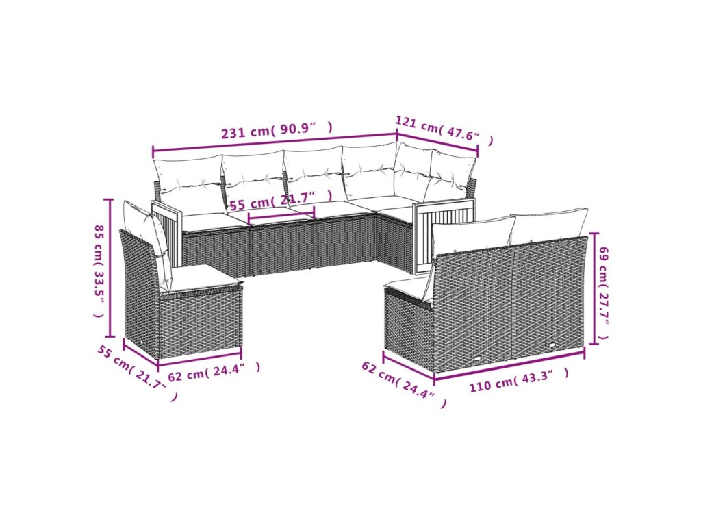 Tato zahradní sedací souprava je dokonalým doplňkem vaší zahrady, terasy nebo dvorku a poskytne vám pohodlné a příjemné místo, kde si můžete povídat s rodinou a přáteli nebo jen tak odpočívat a užívat si pobyt venku.