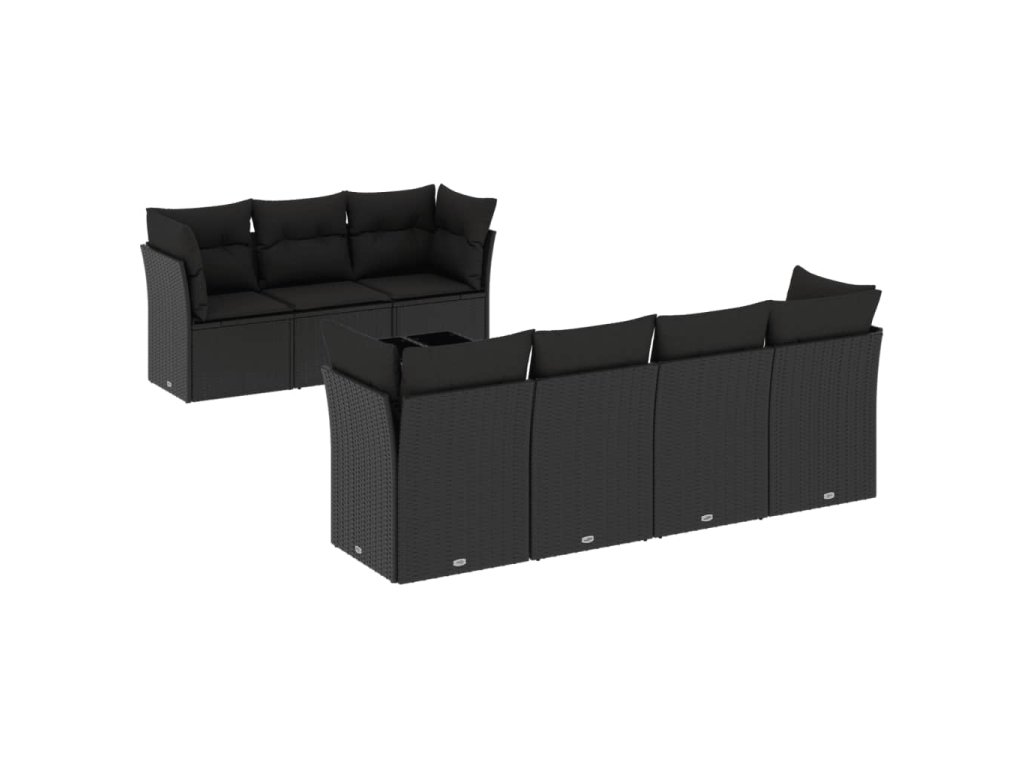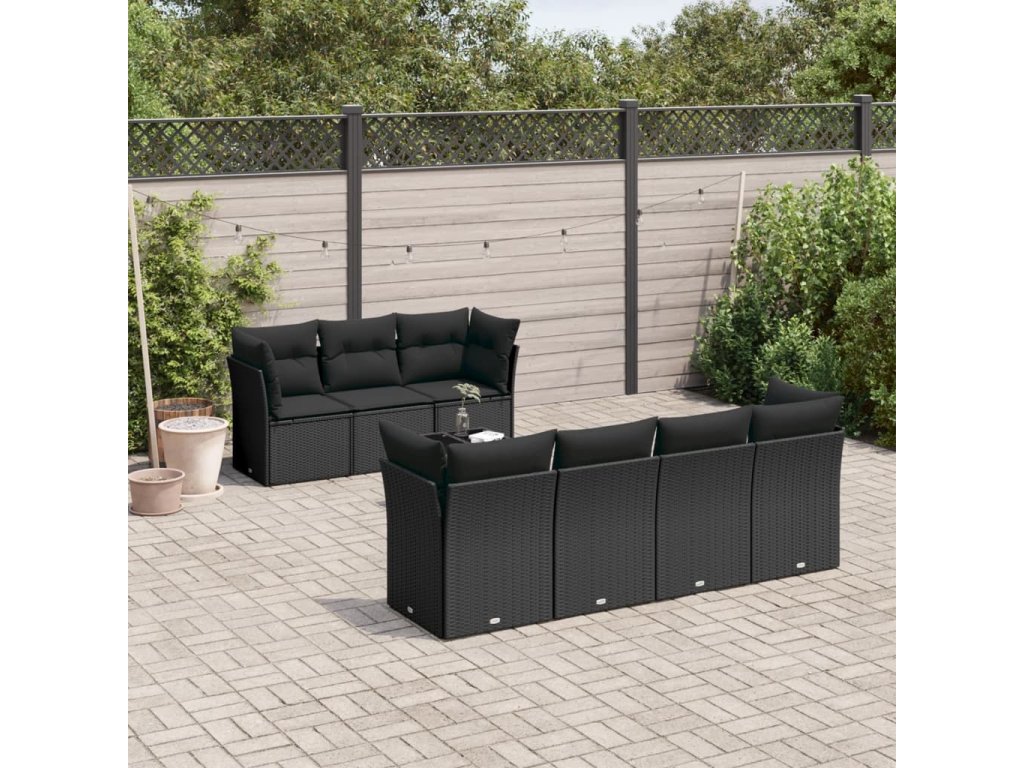 8dílná zahradní sedací souprava s poduškami černá polyratan 3249114