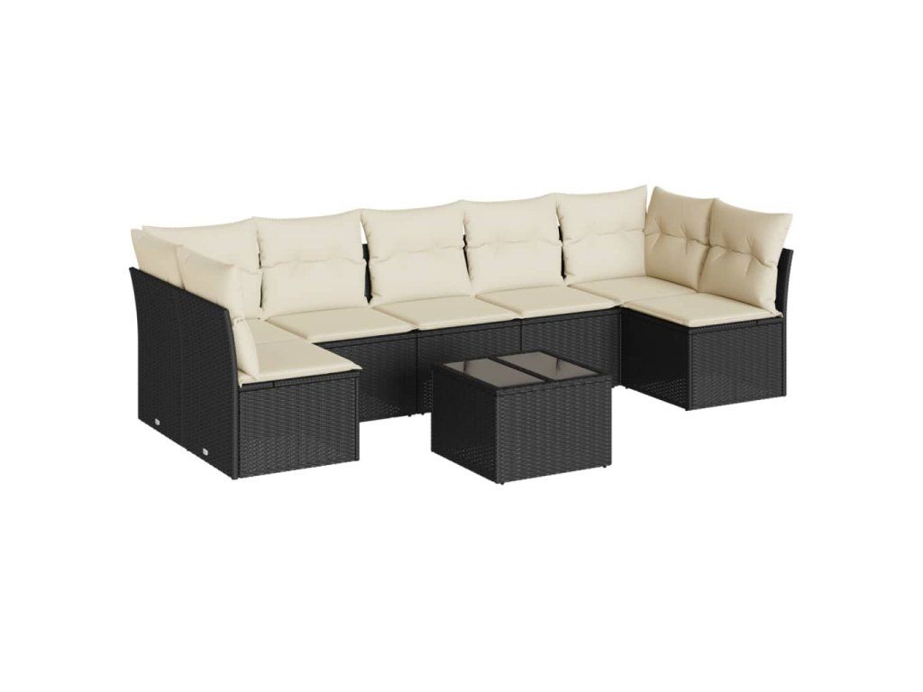 8dílná zahradní sedací souprava s poduškami černá polyratan 3249275