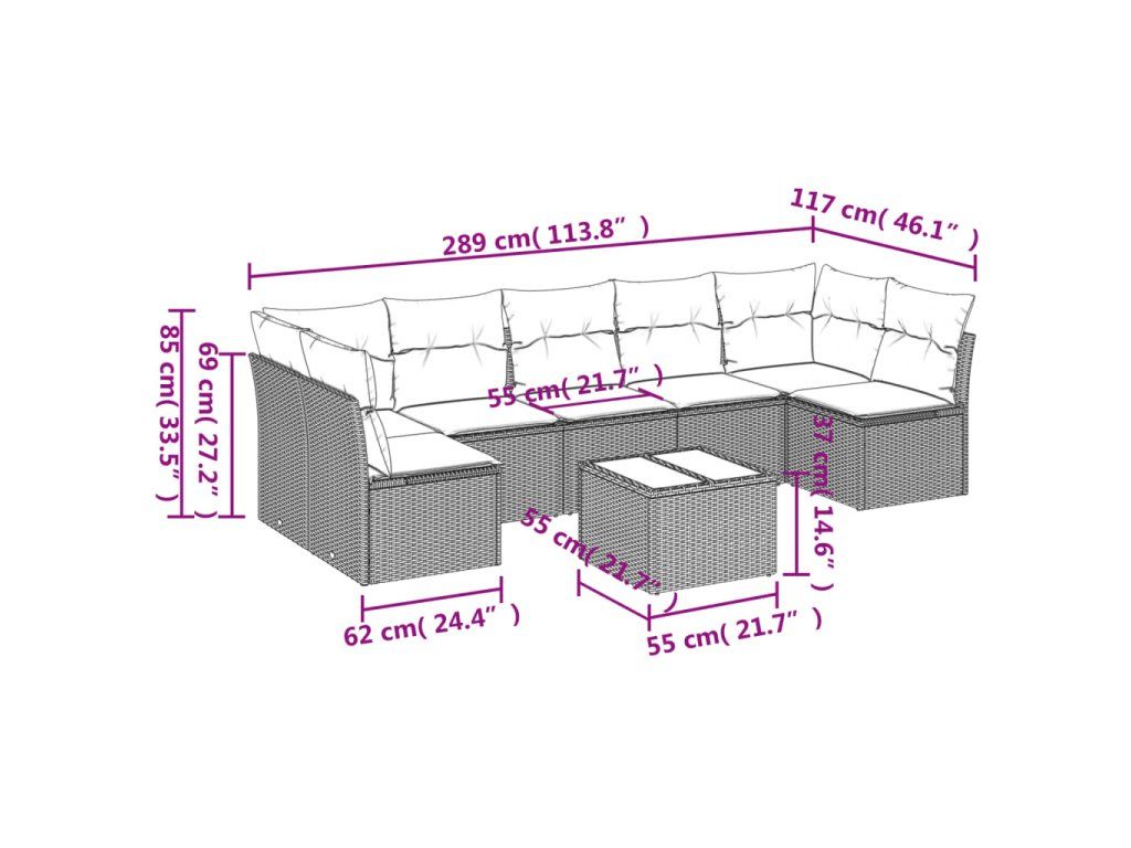 Tato zahradní sedací souprava je dokonalým doplňkem vaší zahrady, terasy nebo dvorku a poskytne vám pohodlné a příjemné místo, kde si můžete povídat s rodinou a přáteli nebo jen tak odpočívat a užívat si pobyt venku.