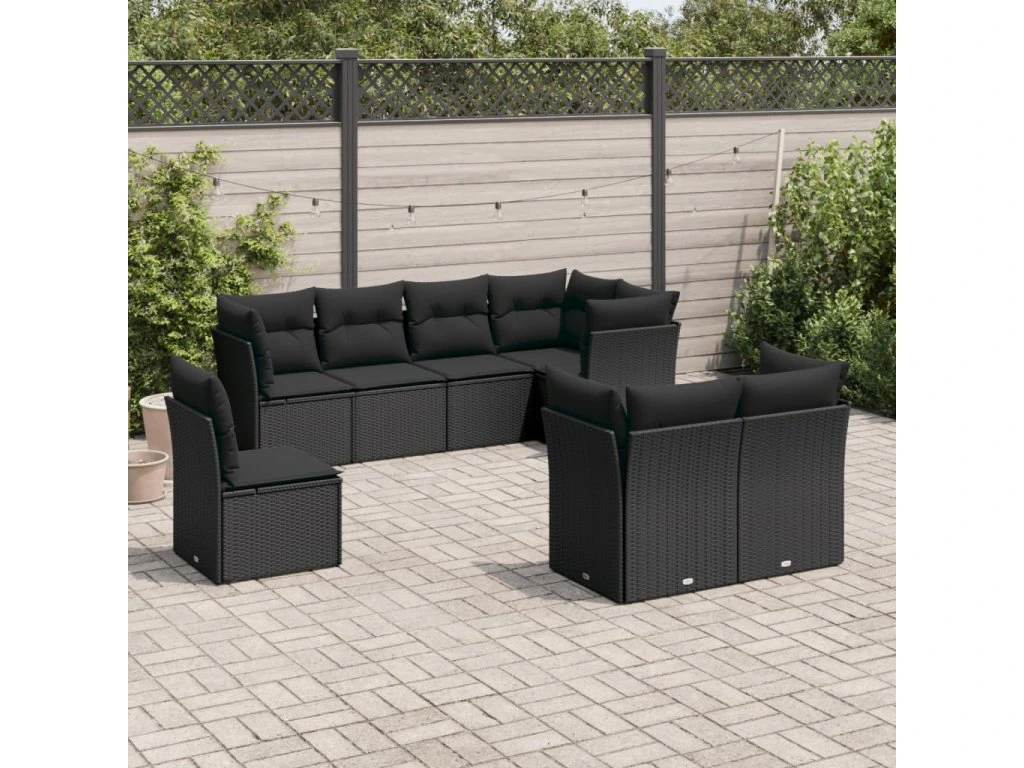 8dílná zahradní sedací souprava s poduškami černá polyratan 3249764
