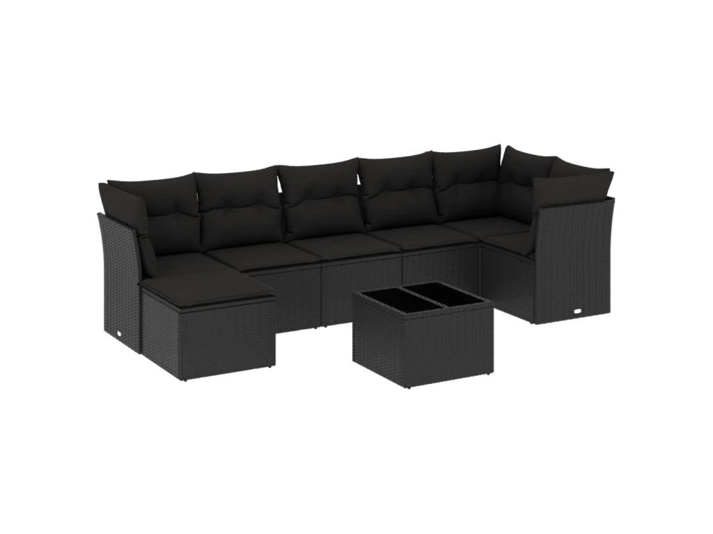 8dílná zahradní sedací souprava s poduškami černá polyratan 3249814