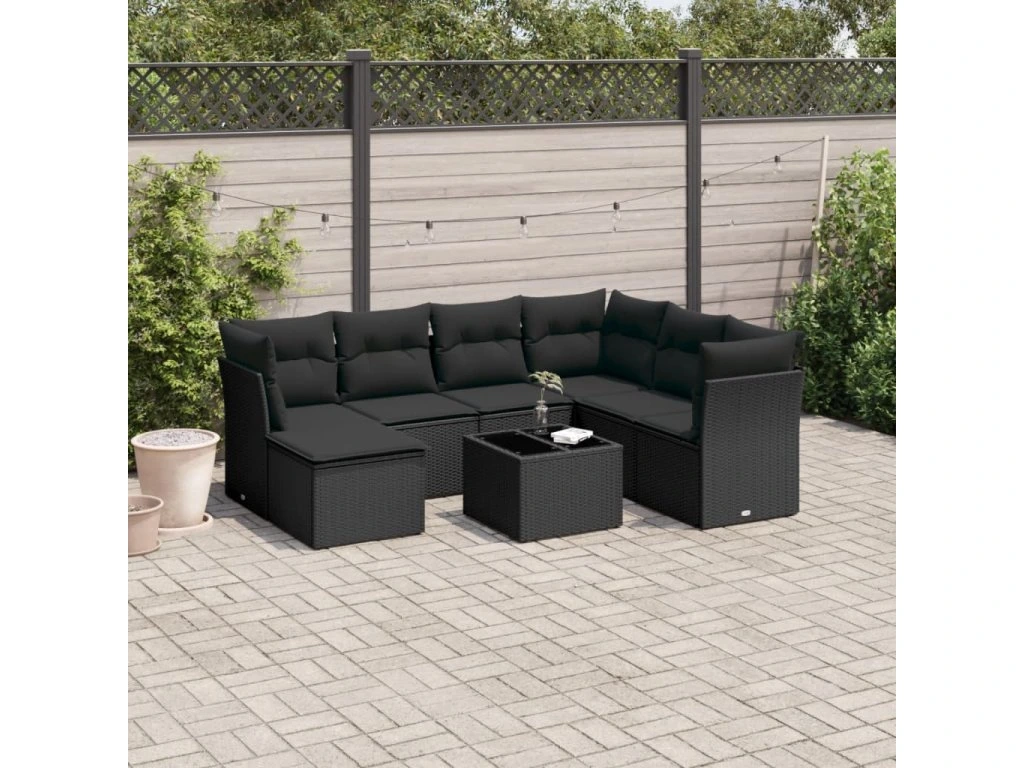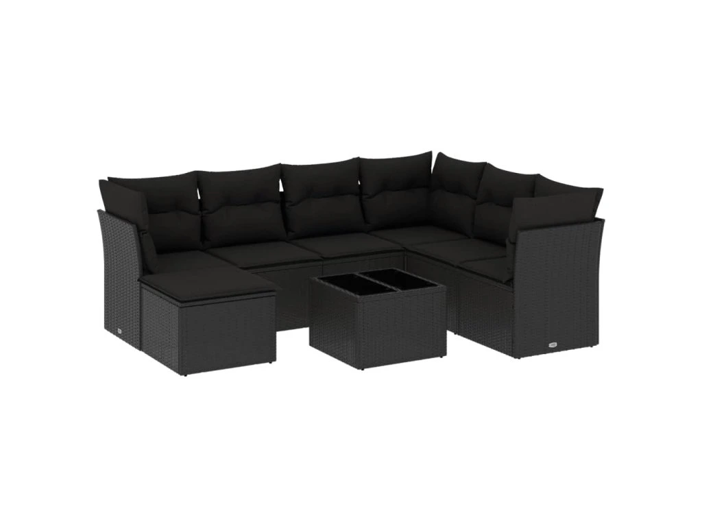 8dílná zahradní sedací souprava s poduškami černá polyratan 3249834