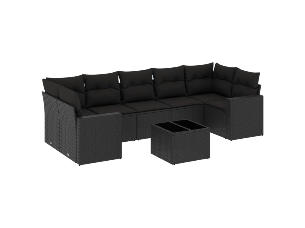 8dílná zahradní sedací souprava s poduškami černá polyratan 3251072