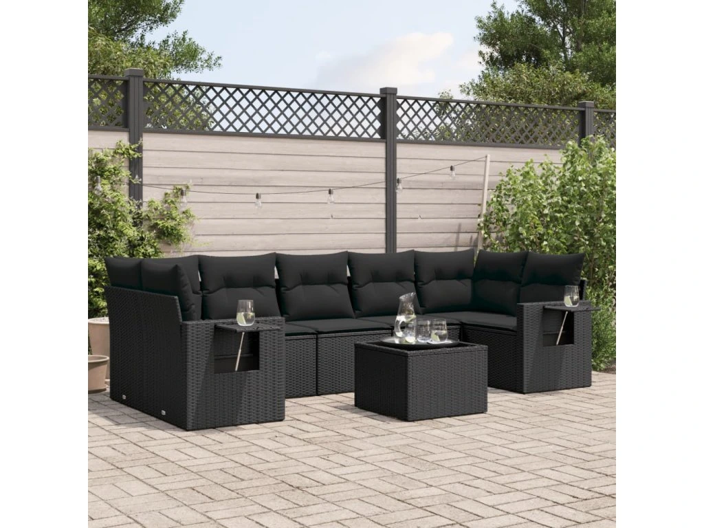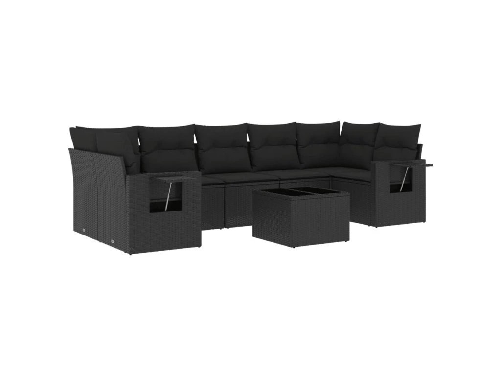 8dílná zahradní sedací souprava s poduškami černá polyratan 3252272