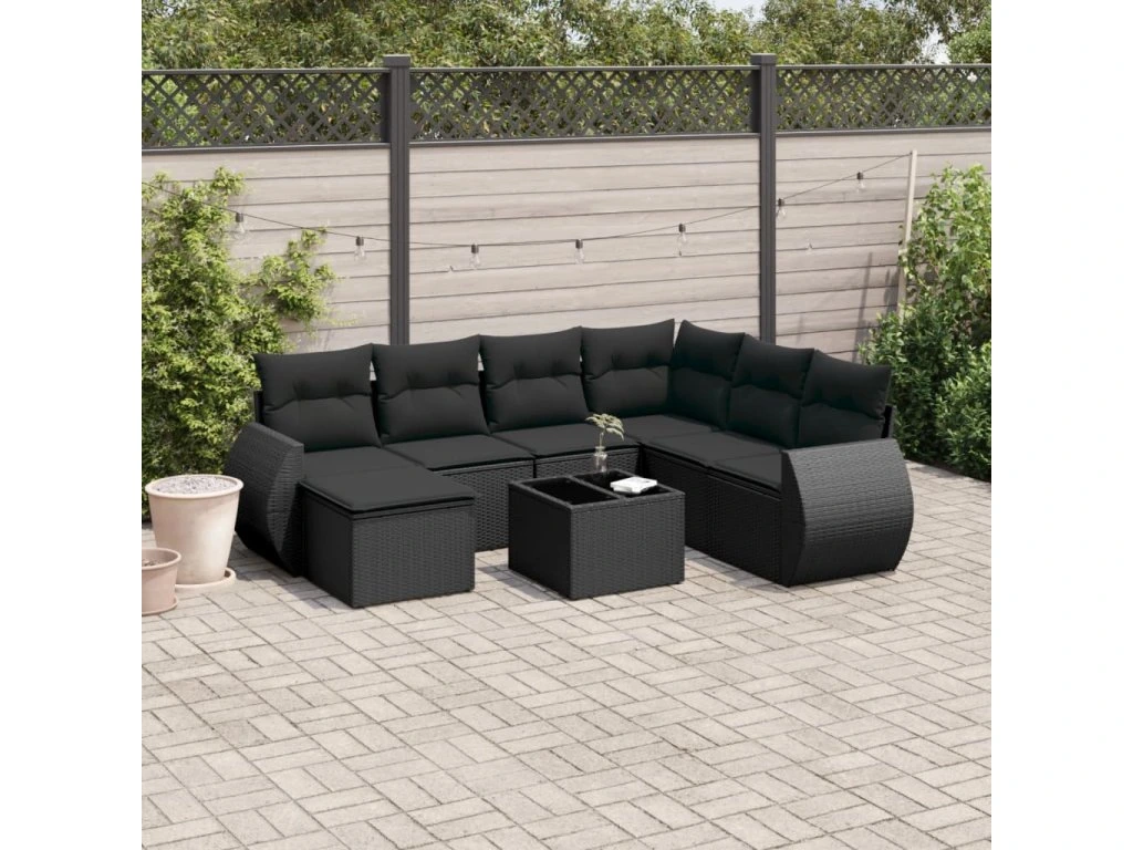 8dílná zahradní sedací souprava s poduškami černá polyratan 3254042