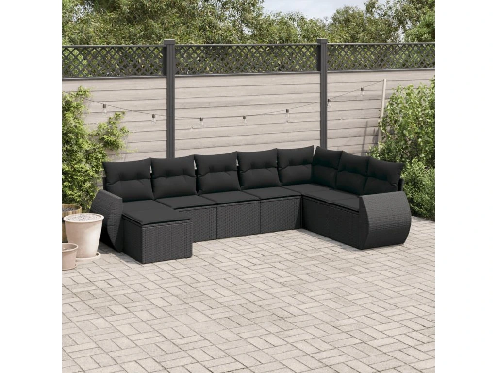 8dílná zahradní sedací souprava s poduškami černá polyratan 3254092