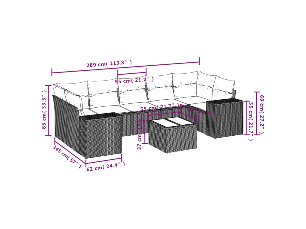 8dílná zahradní sedací souprava s poduškami černá polyratan 3254673