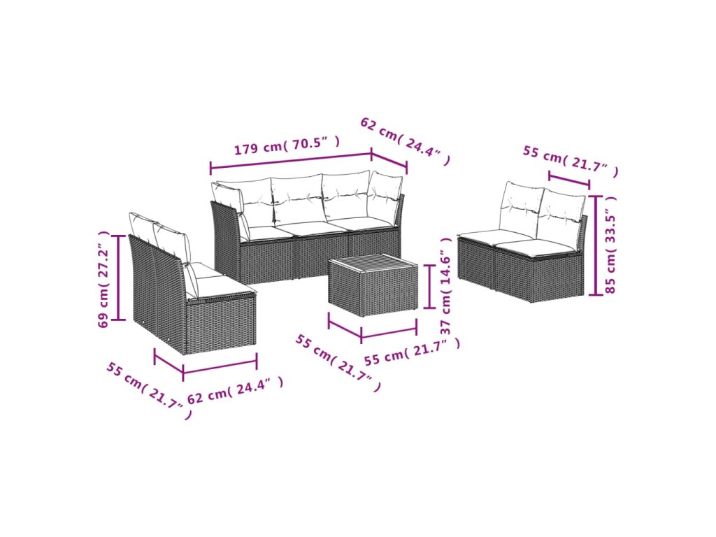 Tato zahradní sedací souprava je dokonalým doplňkem vaší zahrady, terasy nebo dvorku a poskytne vám pohodlné a příjemné místo, kde si můžete povídat s rodinou a přáteli nebo jen tak odpočívat a užívat si pobyt venku.