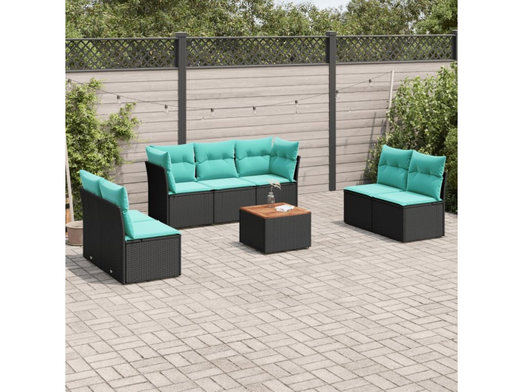 8dílná zahradní sedací souprava s poduškami černá polyratan 3255896