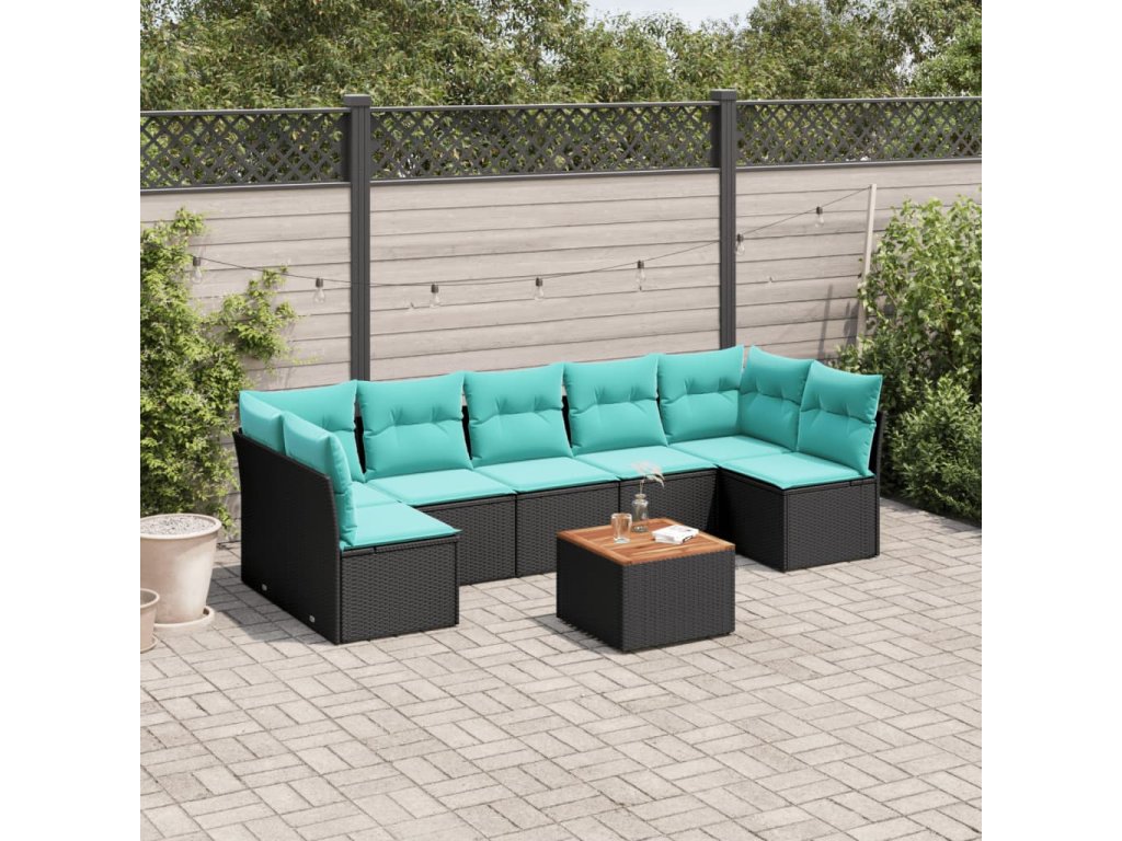 8dílná zahradní sedací souprava s poduškami černá polyratan 3255903