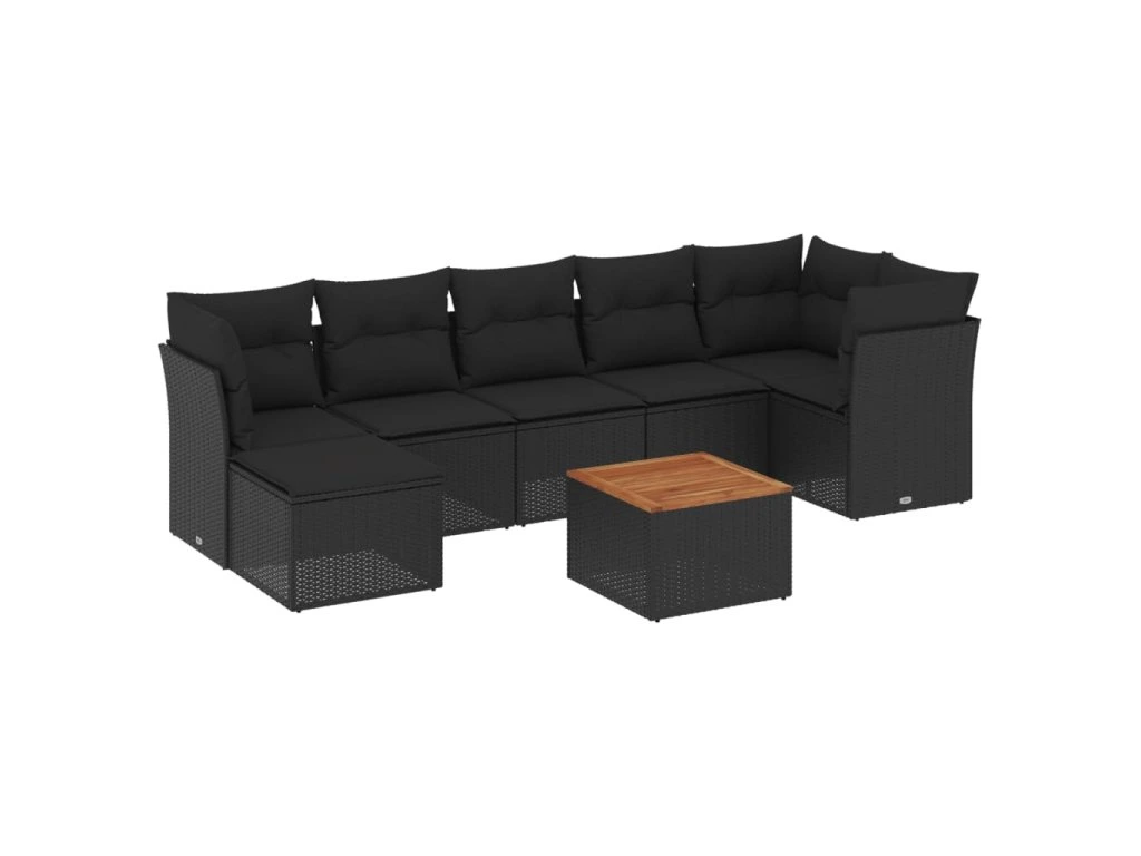 8dílná zahradní sedací souprava s poduškami černá polyratan 3256083