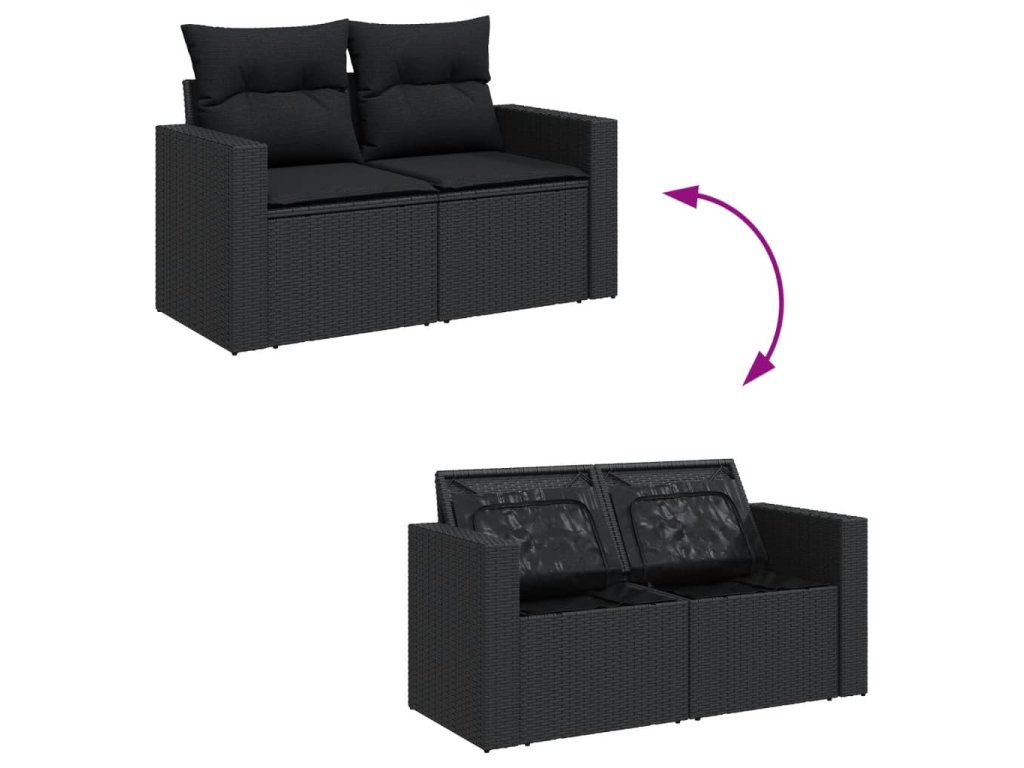 8dílná zahradní sedací souprava s poduškami černá polyratan 3256363