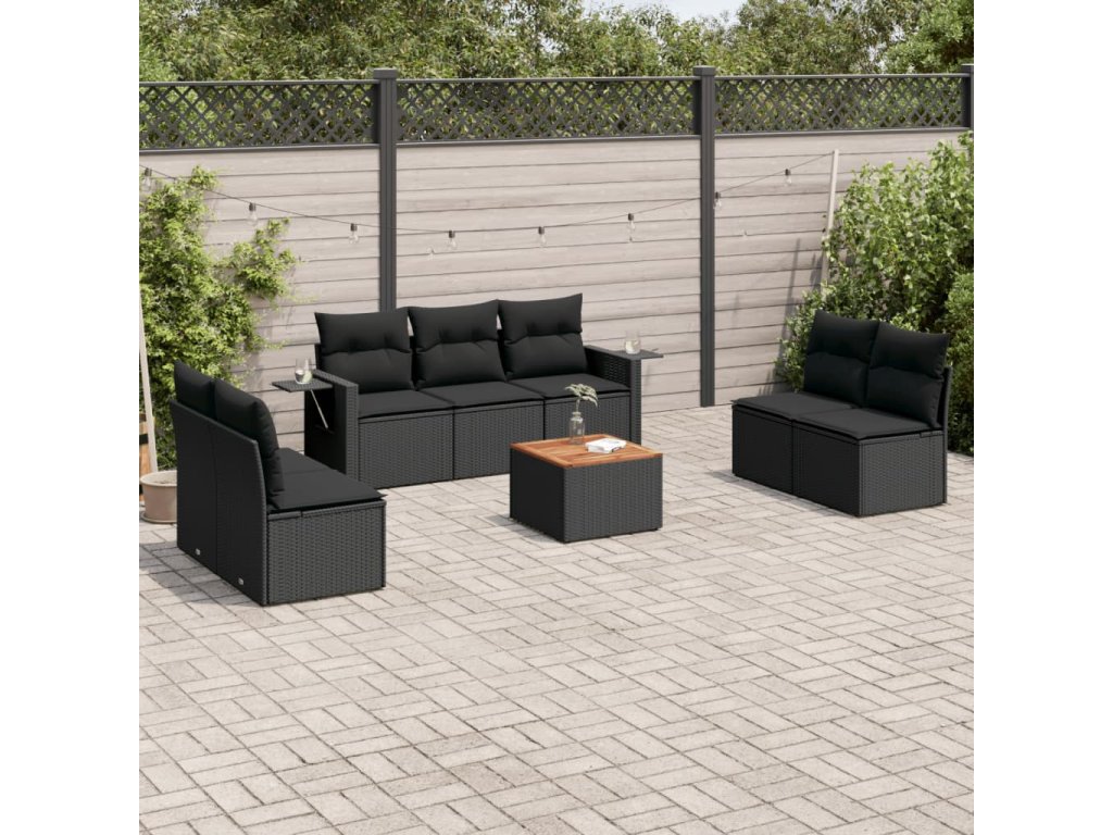 8dílná zahradní sedací souprava s poduškami černá polyratan 3256846