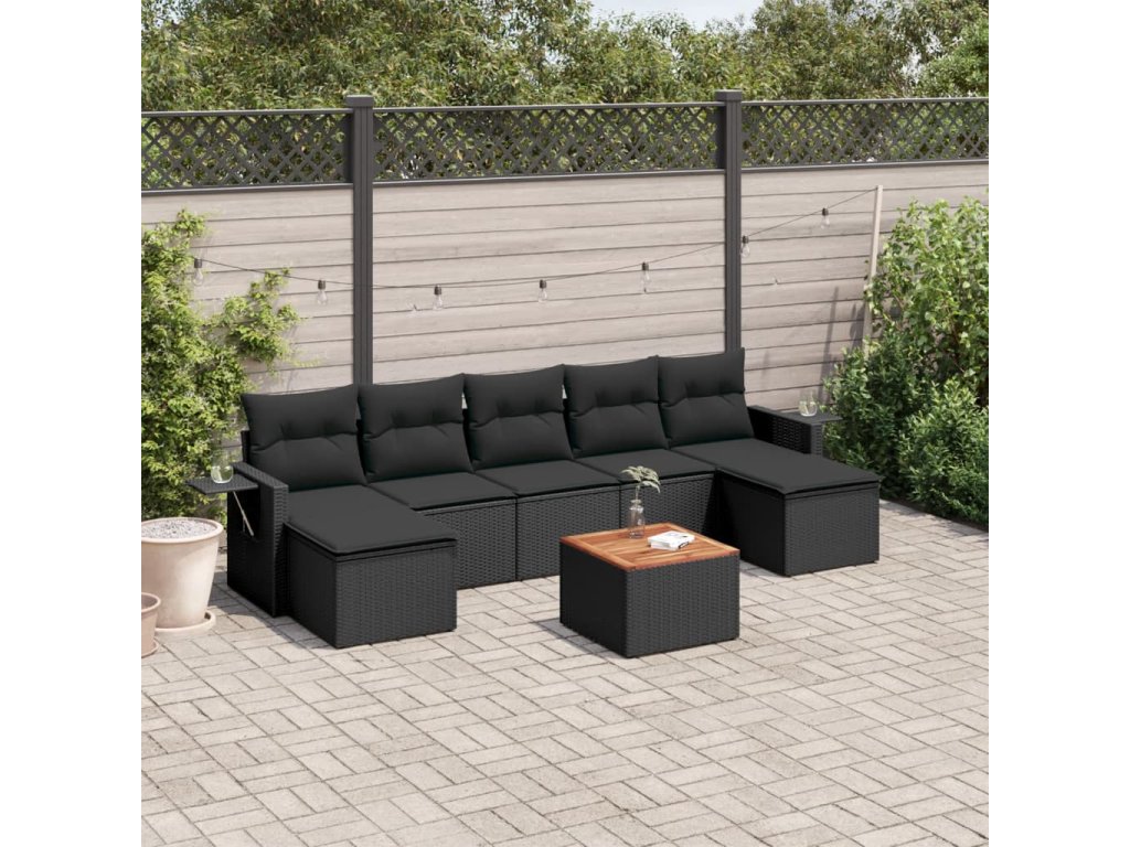 8dílná zahradní sedací souprava s poduškami černá polyratan 3257021