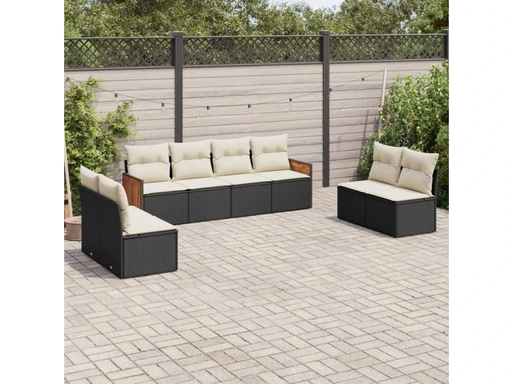 8dílná zahradní sedací souprava s poduškami černá polyratan 3259970