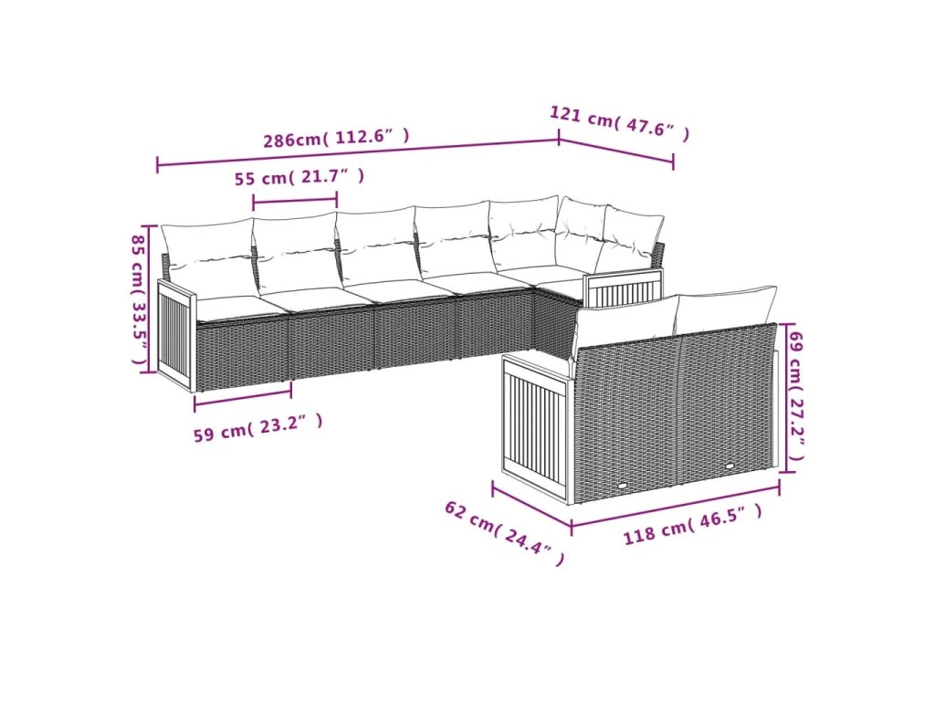 Tato zahradní sedací souprava je dokonalým doplňkem vaší zahrady, terasy nebo dvorku a poskytne vám pohodlné a příjemné místo, kde si můžete povídat s rodinou a přáteli nebo jen tak odpočívat a užívat si pobyt venku.