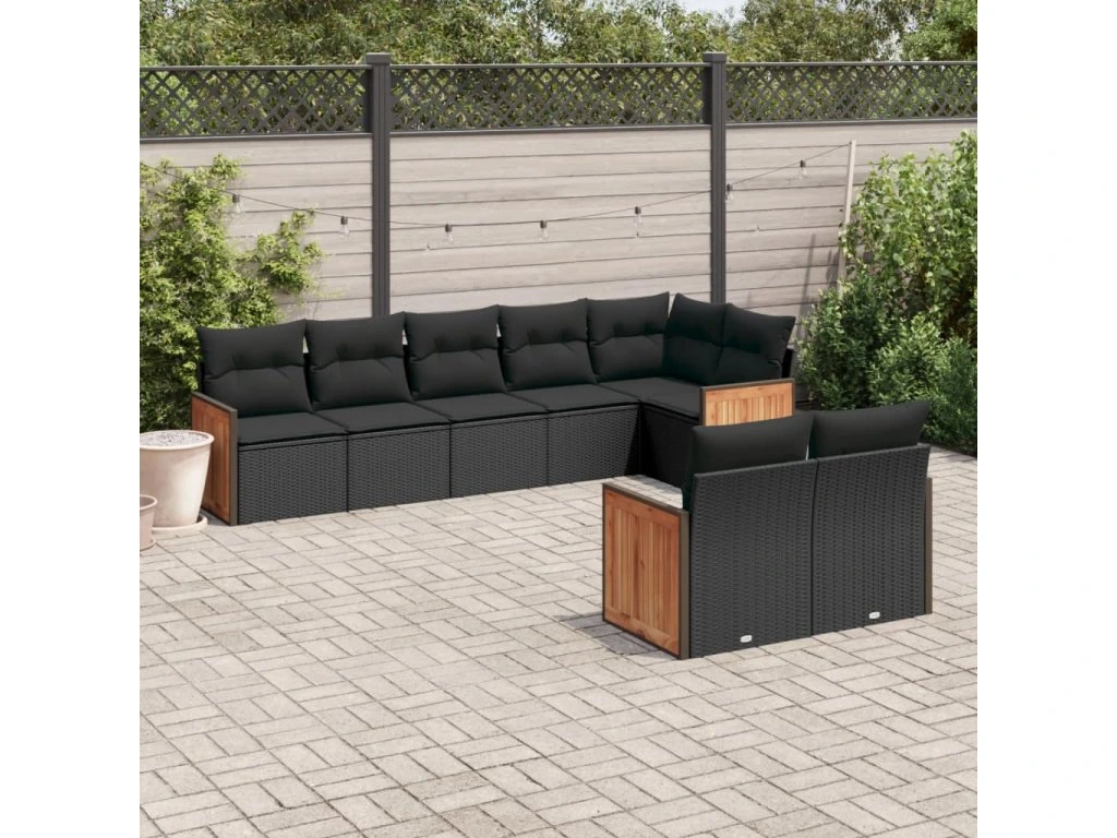 8dílná zahradní sedací souprava s poduškami černá polyratan 3260228