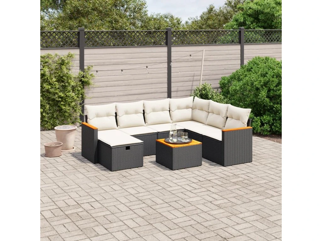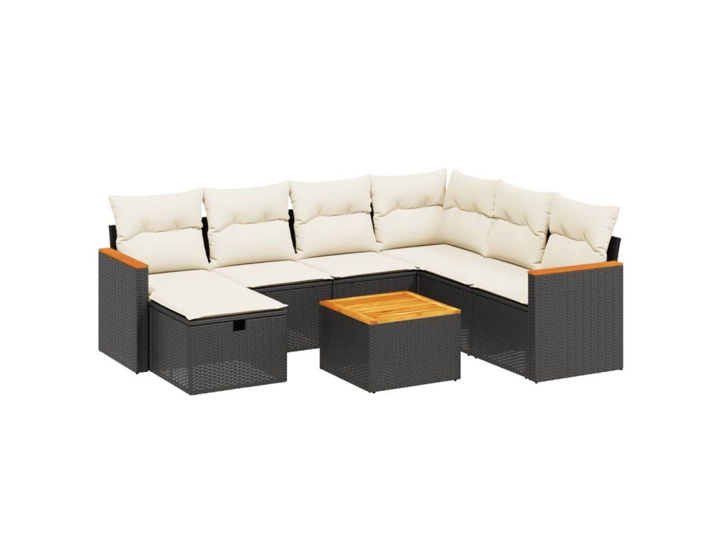 8dílná zahradní sedací souprava s poduškami černá polyratan 3265333