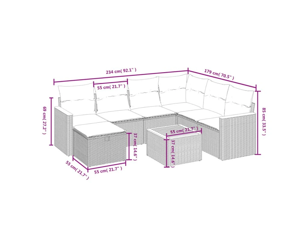 Tato zahradní sedací souprava je dokonalým doplňkem vaší zahrady, terasy nebo dvorku a poskytne vám pohodlné a příjemné místo, kde si můžete povídat s rodinou a přáteli nebo jen tak odpočívat a užívat si pobyt venku.
