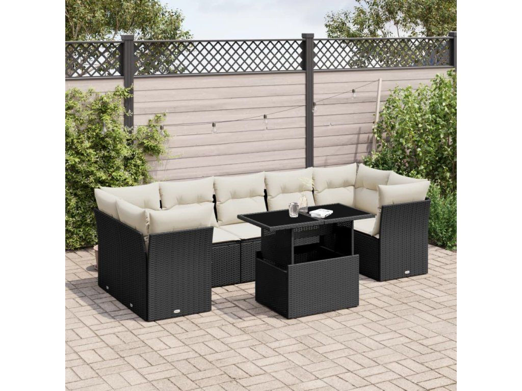 8dílná zahradní sedací souprava s poduškami černá polyratan 3266396