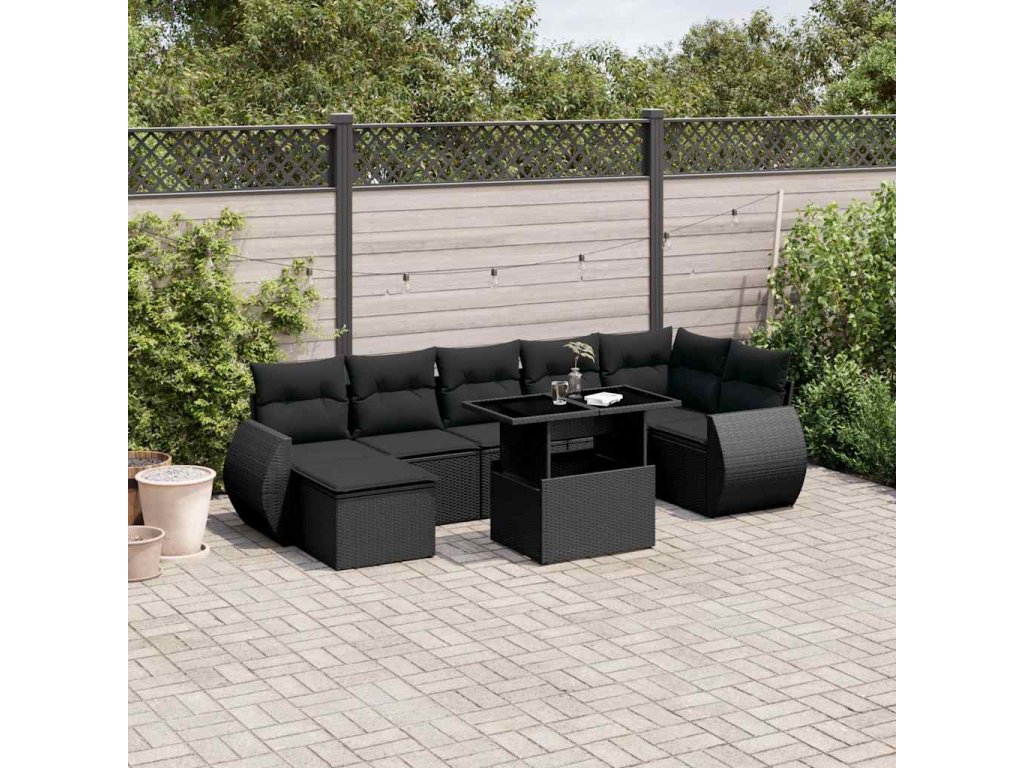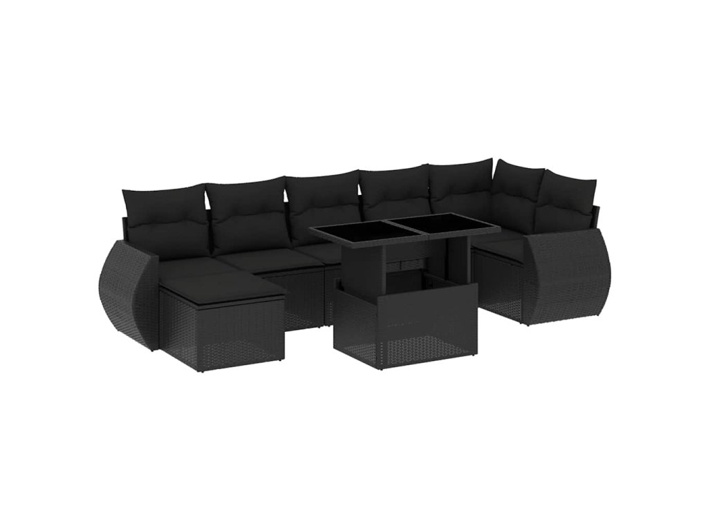 8dílná zahradní sedací souprava s poduškami černá polyratan 3268685
