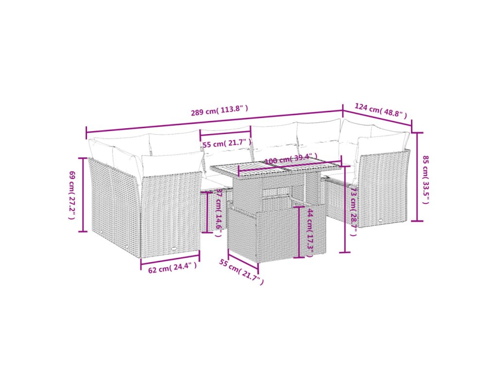 8dílná zahradní sedací souprava s poduškami černá polyratan 3270698