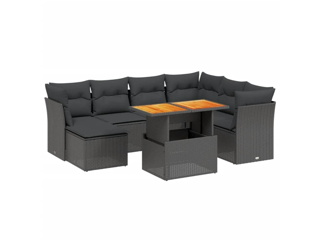 8dílná zahradní sedací souprava s poduškami černá polyratan 3270950