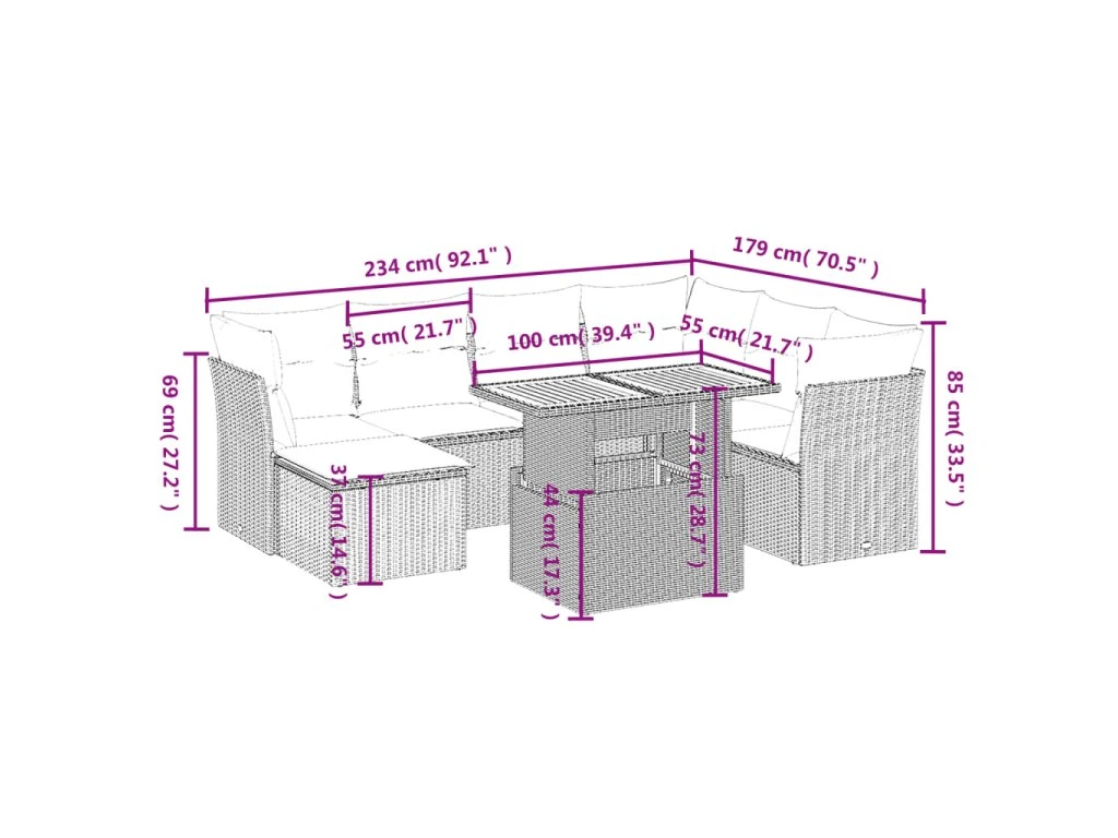 Tato zahradní sedací souprava je dokonalým doplňkem vaší zahrady, terasy nebo dvorku a poskytne vám pohodlné a příjemné místo, kde si můžete povídat s rodinou a přáteli nebo jen tak odpočívat a užívat si pobyt venku.
