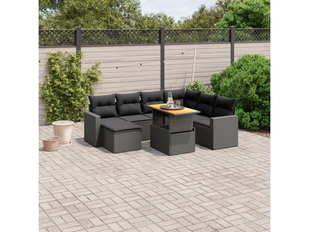 8dílná zahradní sedací souprava s poduškami černá polyratan 3271426
