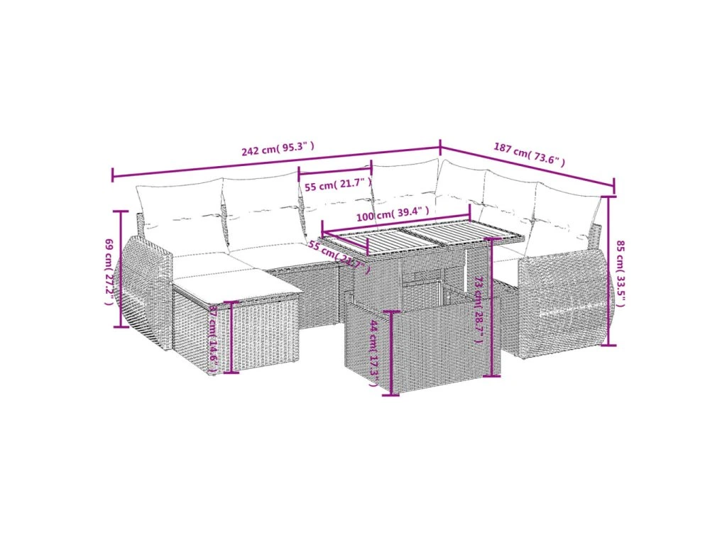 Tato zahradní sedací souprava je dokonalým doplňkem vaší zahrady, terasy nebo dvorku a poskytne vám pohodlné a příjemné místo, kde si můžete povídat s rodinou a přáteli nebo jen tak odpočívat a užívat si pobyt venku.