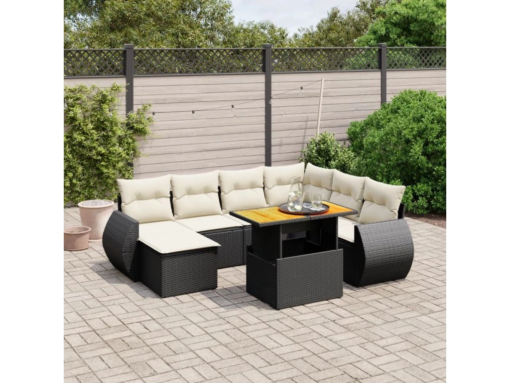 8dílná zahradní sedací souprava s poduškami černá polyratan 3272309
