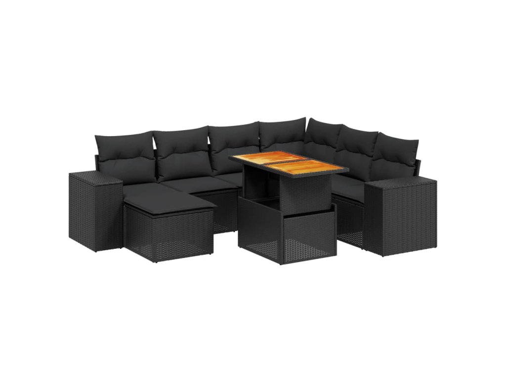 8dílná zahradní sedací souprava s poduškami černá polyratan 3272749