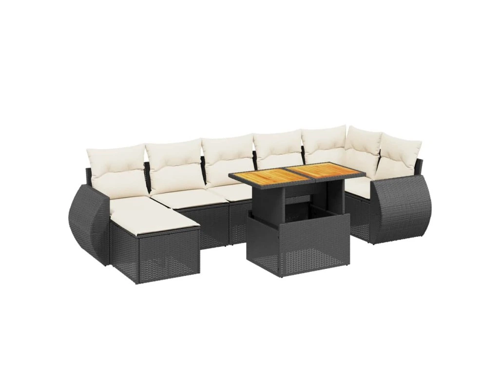 8dílná zahradní sedací souprava s poduškami černá polyratan 3275821