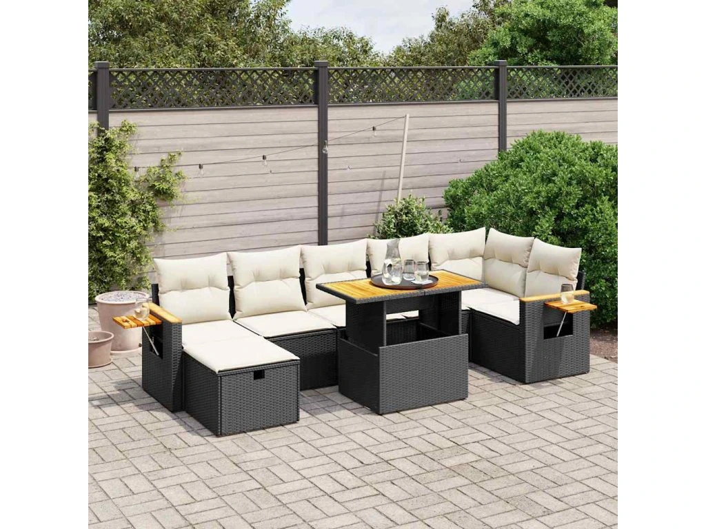 8dílná zahradní sedací souprava s poduškami černá polyratan 3276150