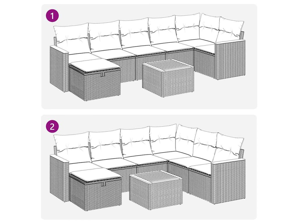 - Modulární design: Tato sada venkovního nábytku se vyznačuje modulární konstrukcí, je tedy zcela flexibilní a lze ji snadno přemisťovat, takže si můžete uspořádat venkovní nábytek dle vašich potřeb.