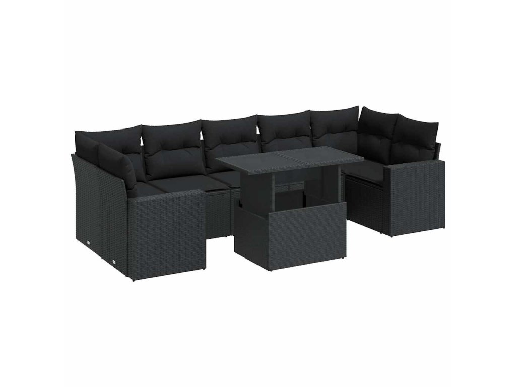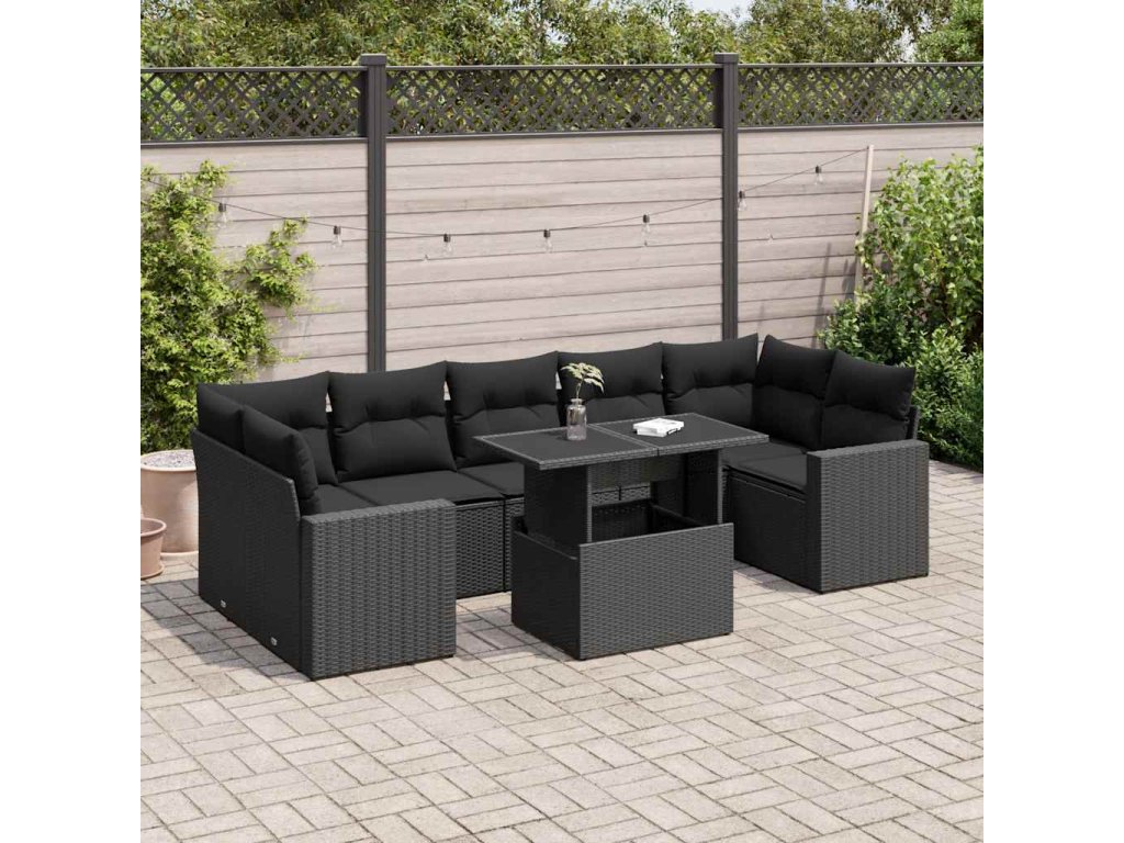 8dílná zahradní sedací souprava s poduškami černá polyratan 3326276