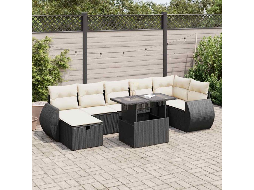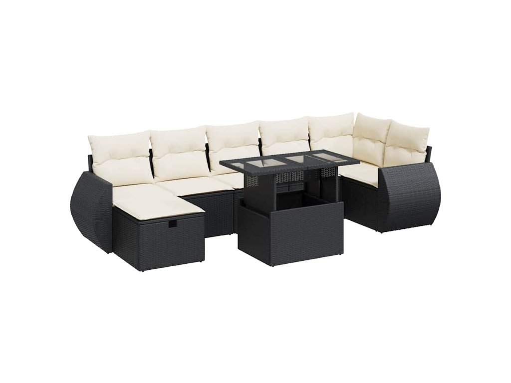 8dílná zahradní sedací souprava s poduškami černá polyratan 3327906
