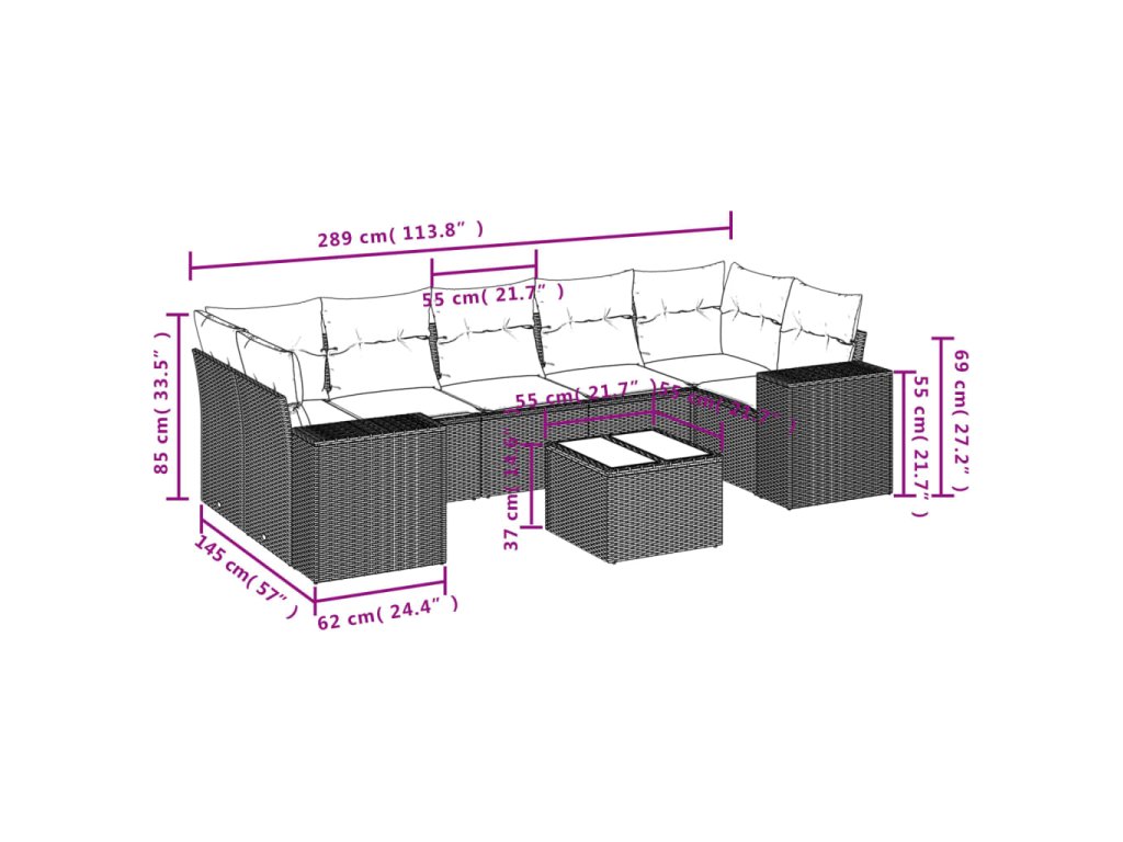 8dílná zahradní sedací souprava s poduškami hnědá polyratan 3254680