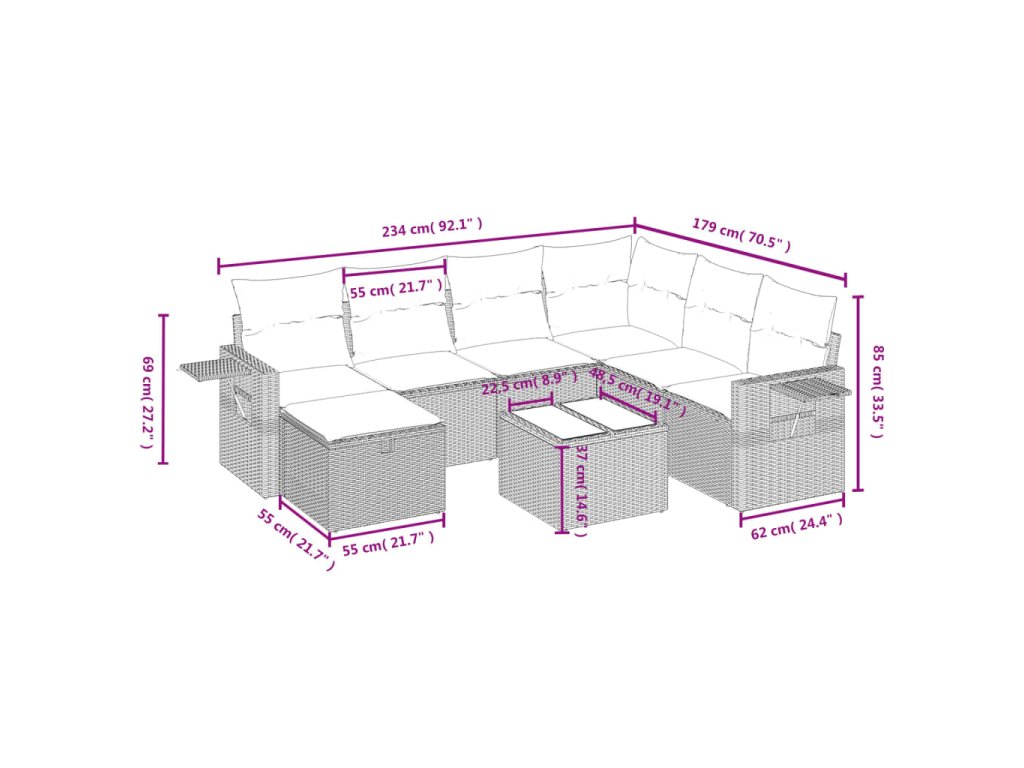8dílná zahradní sedací souprava s poduškami hnědá polyratan 3263849