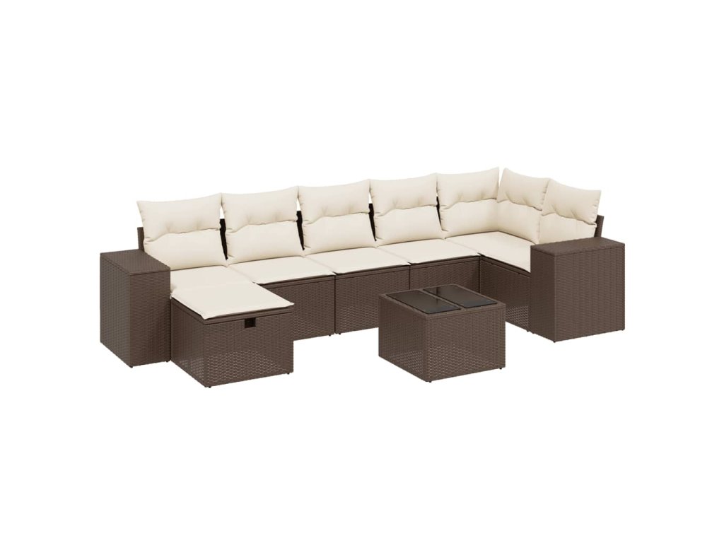 8dílná zahradní sedací souprava s poduškami hnědá polyratan 3264469