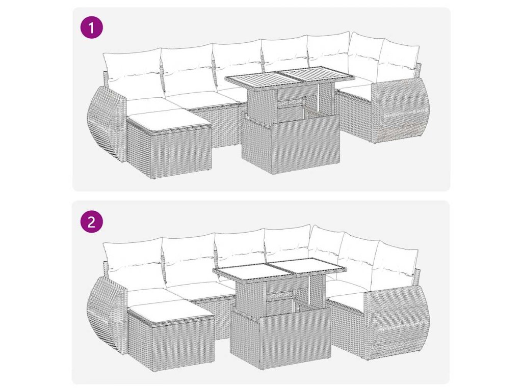 Tato zahradní sedací souprava je dokonalým doplňkem vaší zahrady, terasy nebo dvorku a poskytne vám pohodlné a příjemné místo, kde si můžete povídat s rodinou a přáteli nebo jen tak odpočívat a užívat si pobyt venku.