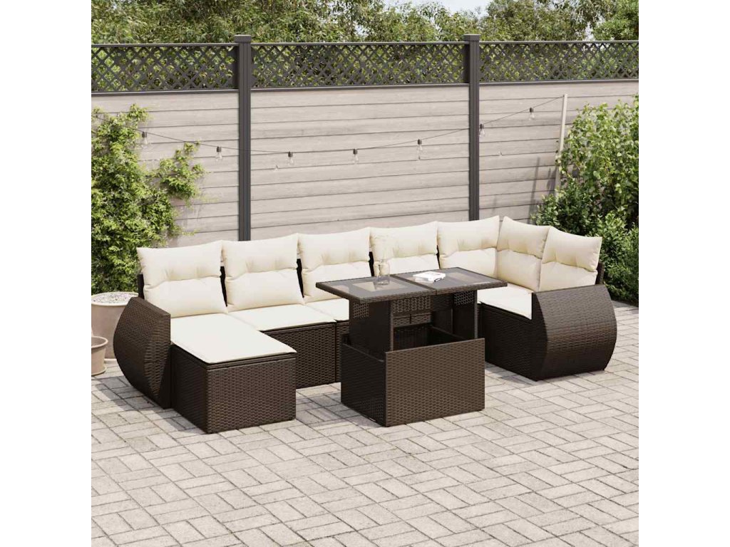 8dílná zahradní sedací souprava s poduškami hnědá polyratan 3326684