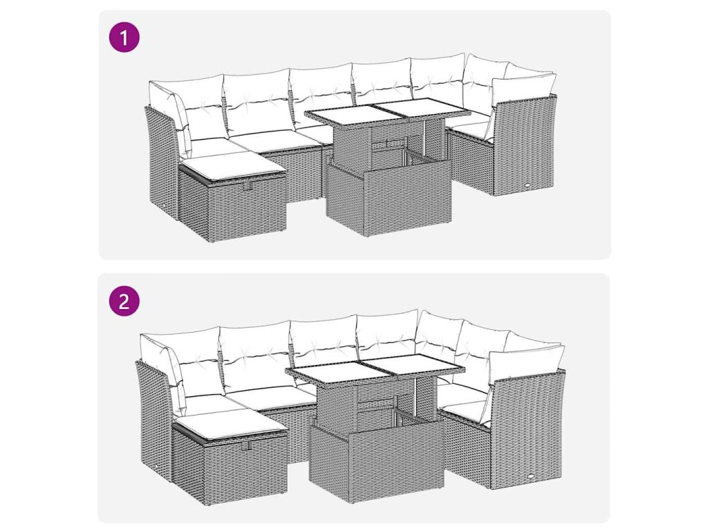 - Modulární design: Tato sada venkovního nábytku se vyznačuje modulární konstrukcí, je tedy zcela flexibilní a lze ji snadno přemisťovat, takže si můžete uspořádat venkovní nábytek dle vašich potřeb.