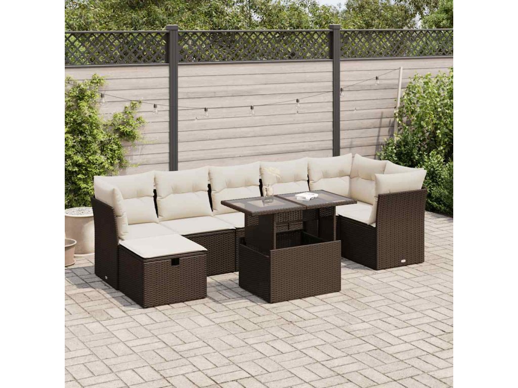 8dílná zahradní sedací souprava s poduškami hnědá polyratan 3327793