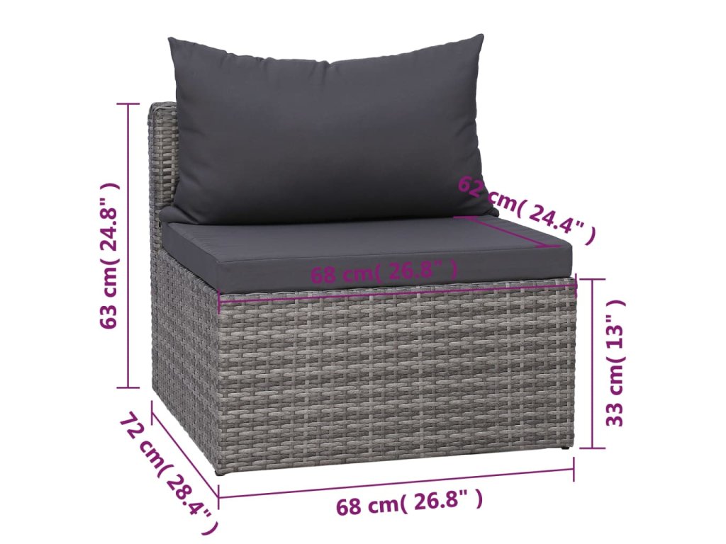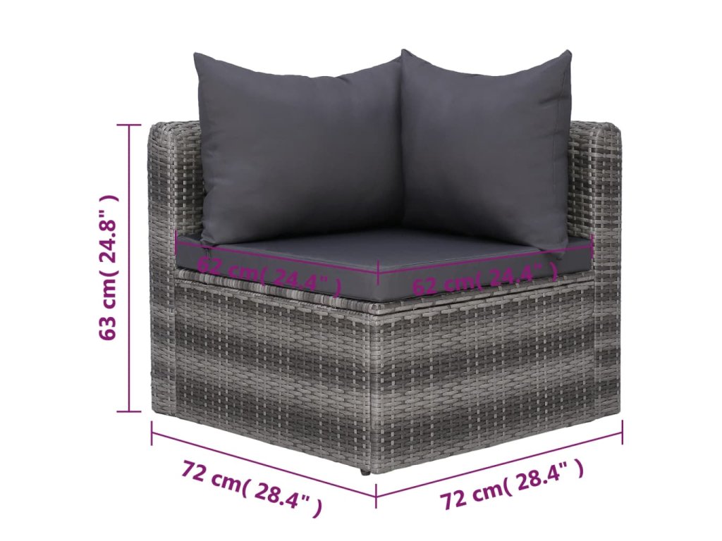 8dílná zahradní sedací souprava s poduškami polyratan šedá 3059494