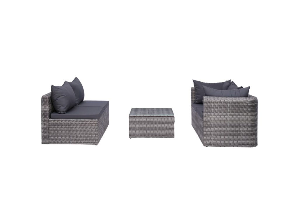 Zahradní sedací souprava je vyrobená z voděodolného polyratanu, který se snadno udržuje čistý. Je pevná a odolná a vhodná pro každodenní venkovní použití. Sada obsahuje mimořádně pohodlné, silně polstrované podušky na sedáky a polštáře za záda, jež vám umožní užívat si stejného pohodlí jako ve vašem obývacím pokoji. Polyesterové potahy jsou nenáročné na údržbu a dají se jednoduše sejmout a vyprat. Polyratanová souprava je velmi flexibilní, můžete ji tedy snadno přestavět tak, aby krásně zapadla do každého prostředí.